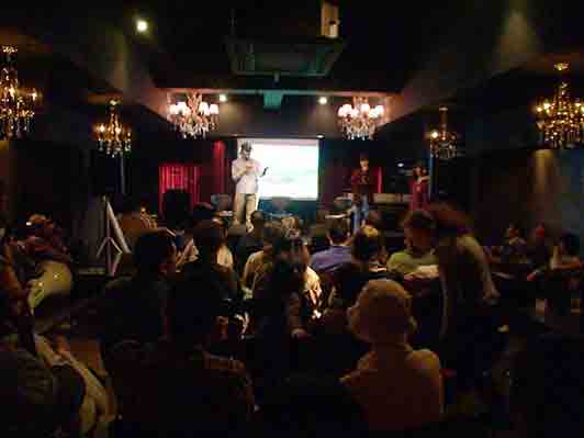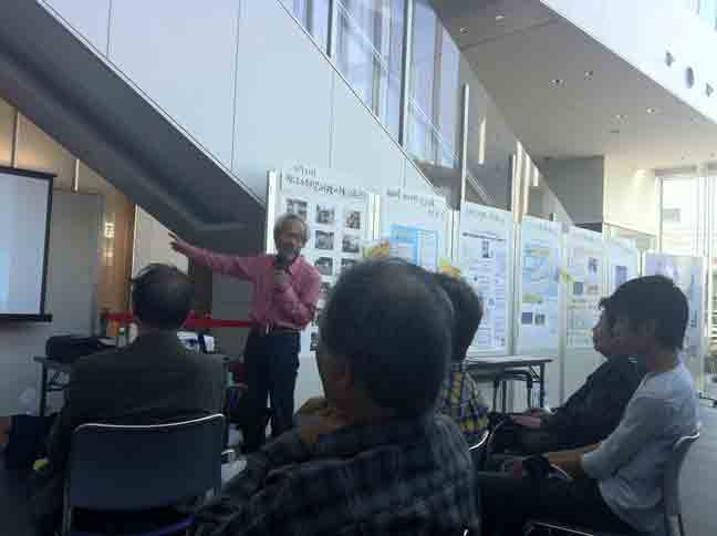 午後3時からは交流会&ミニライブが開かれました。Sing J Royさんが司会役をつとめ、小鶴さん製作の福島のこどもたちの映像など、歌声とトークでひとときをすごしました。