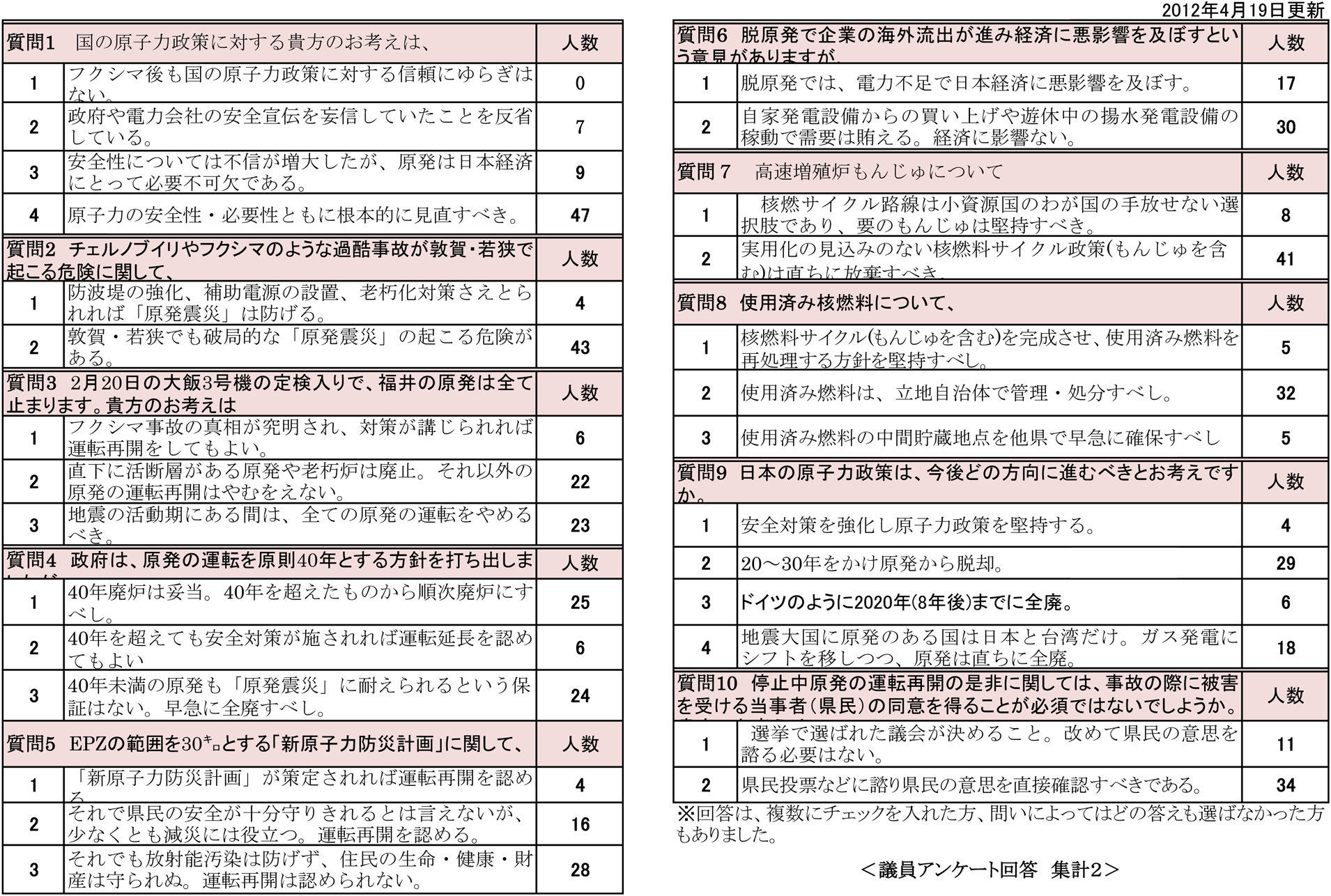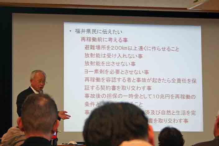 4)福島県では事故の大きさに鑑み、全10基を廃炉とする表明をしました。15基も抱える福井県でも廃炉にすべきではないか