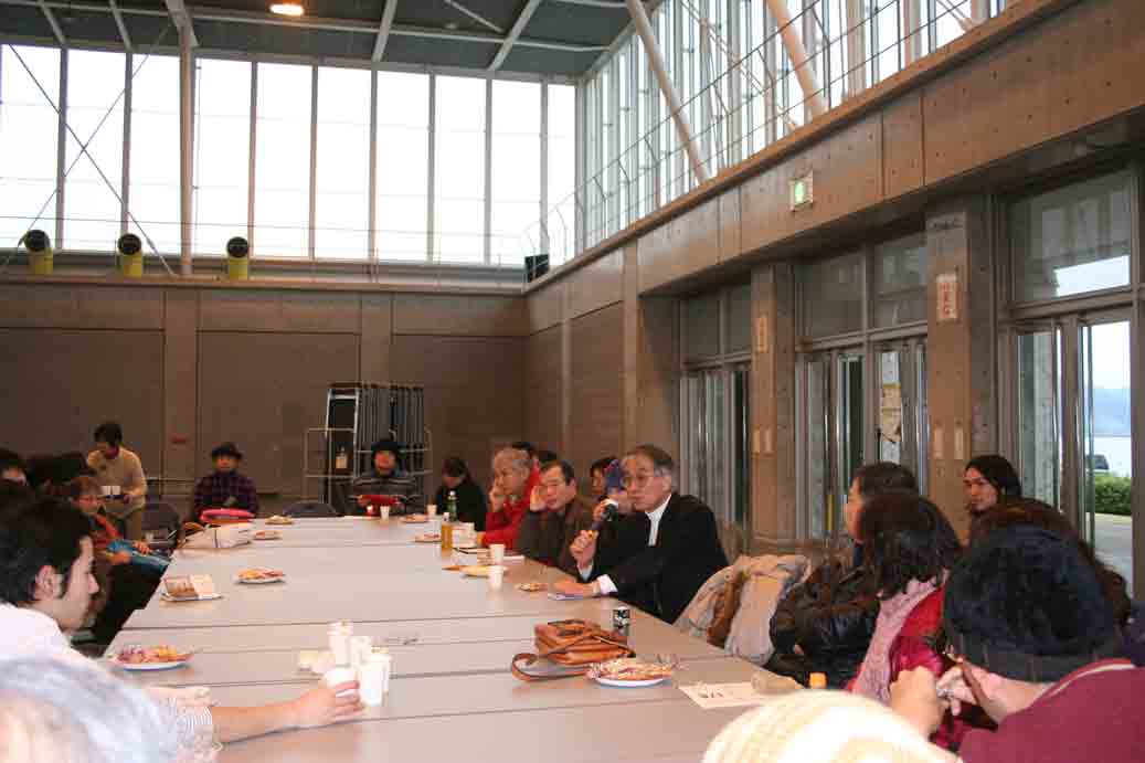 当会の山崎代表はこれまでの長年の運動を振り返り、また最近の議長や首長訪問についての話をしました。