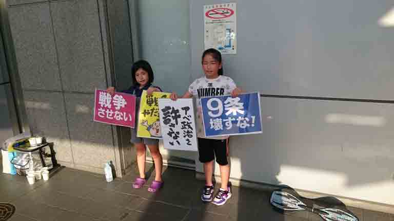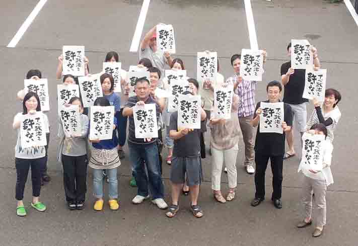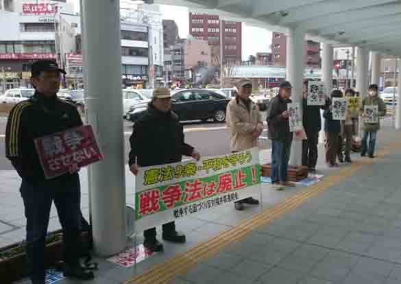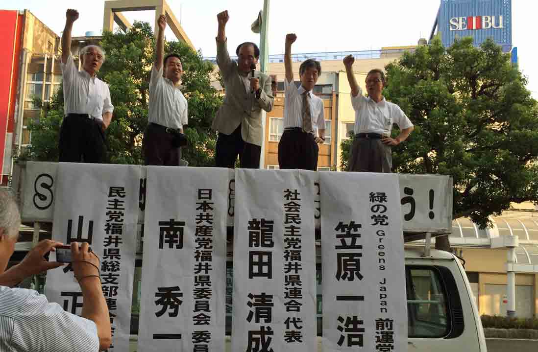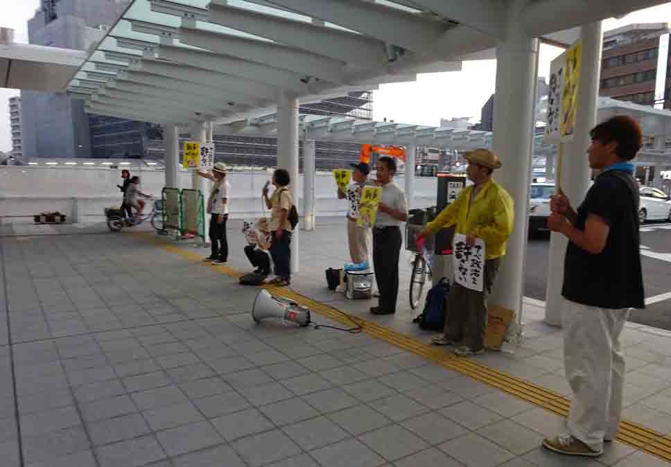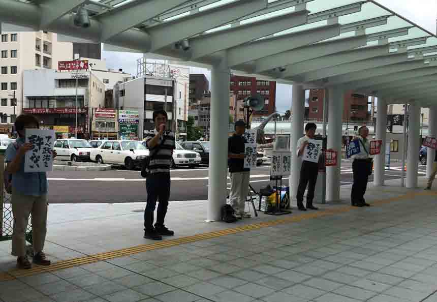 戦争法案反対 施行は許さない 「アベ政治を許さない」と福井駅西口で抗議をおこないました。