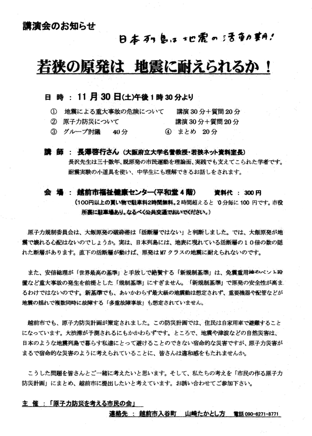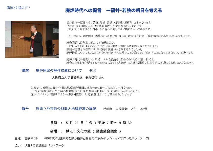 主催:若狭ネット 連絡 090-6271-8776(山崎さん)