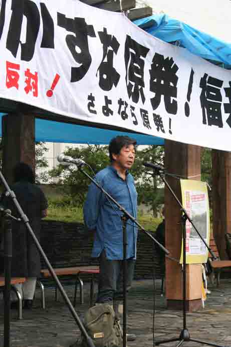 実行委員長の石地優さんが「福井県知事の同意は県民の同意ではない」と挨拶をし、中島哲演師の言葉につづき、鎌田慧さんや小林圭二さんが力強く再稼働の不当性を訴えられました。80名が一分間スピーチで思いのたけを述べました。歌やコーラスで表現するグループもあり、野田政権に対する怒りが空にこだましました。