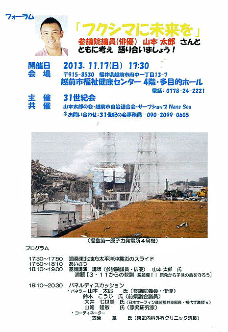 俳優の山本太郎氏は、「フクシマ」の後に原発を再稼働することは考えられない。大飯町長に会ったら、今の考えをじっくり聞きたいとのべられました。
