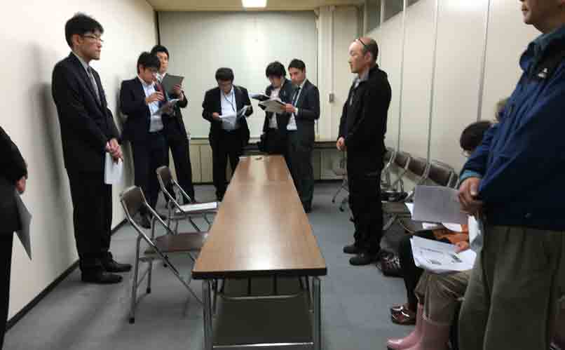 県内5団体が,今年3月に原子力防災計画の訓練の事後検証を後退させる内容に改定した理由について質しました。防災計画の改定が改善になっておらず、むしろ後退しているので、敢えて改訂した理由について公開質問状を提出しました。議会準備とはいえ、議会開催日ではないのに責任者が現れない 。知事は質問状を3回も無視しているなども抗議をしました。