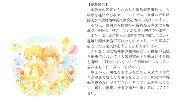 福井県議会への要望 (議会は西川知事に一任しました 6/14) こちら